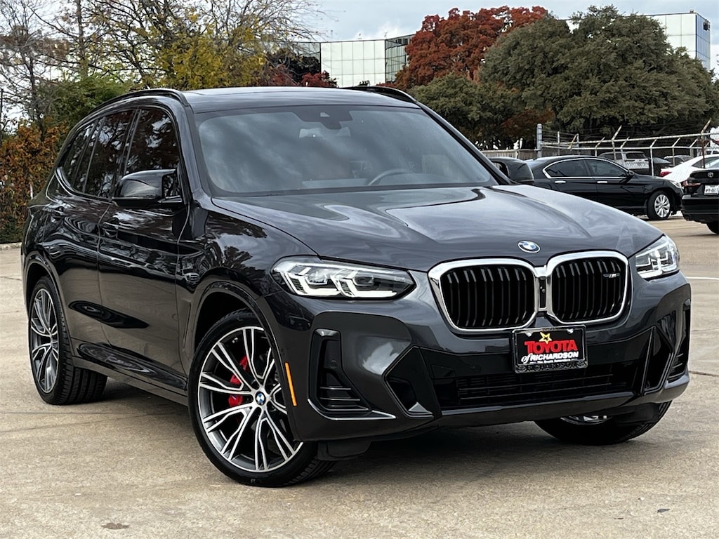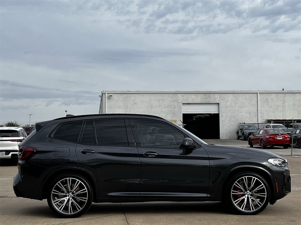 Experience the thrill of driving the 2022 BMW X3 M40i, a used SUV that combines sophistication with power, crafted for those who appreciate the finer things in life. The straight 6-cylinder engine paired with an 8-speed automatic sport transmission delivers a seamless, exhilarating drive, while the all-wheel drive ensures confidence on any terrain. The Dark Graphite Metallic exterior exudes elegance, complemented by performance tires and a sleek rear spoiler for a sporty edge.