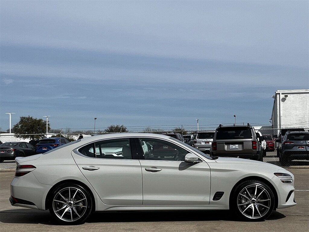 Experience the thrill of driving the 2025 Genesis G70 2.5T, a used vehicle that combines dynamic performance with cutting-edge safety features. This compact passenger car, dressed in an elegant Vatna Gray, is powered by a turbocharged 4-cylinder engine paired with an 8-speed automatic transmission, delivering a seamless and responsive driving experience. The all-wheel-drive system ensures superior traction and stability, making it perfect for any road condition.