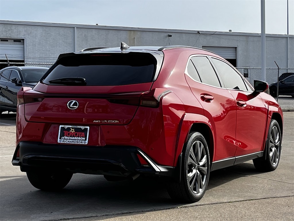 Step into the world of the 2024 Lexus UX 250h F SPORT Handling, a used marvel that combines cutting-edge technology with sophisticated style. This compact sport utility vehicle is designed for those who crave a dynamic driving experience without compromising on luxury. The striking Redline with Obsidian Roof exterior ensures you make a bold statement wherever you go. Equipped with a responsive 4-cylinder hybrid engine, this AWD powerhouse offers seamless performance and exceptional fuel efficiency.