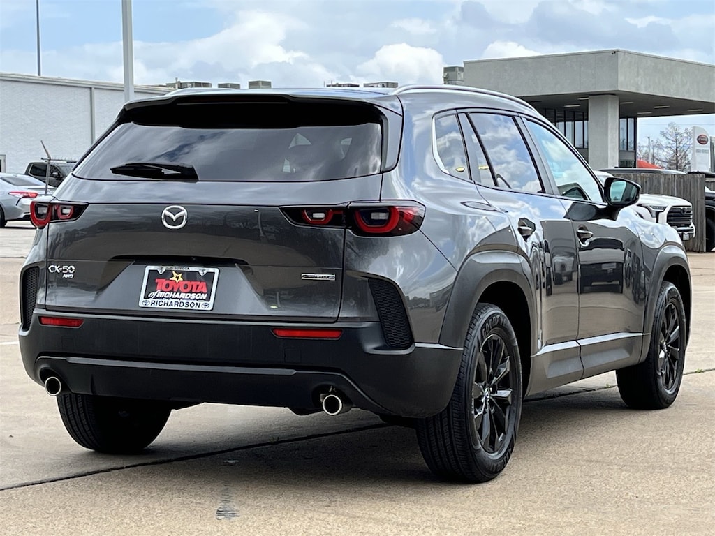 Step into the world of the 2025 Mazda CX-50, where sophistication meets performance in this dynamic SUV. Designed for the modern adventurer, this used Mazda CX-50 in Machine Gray Metallic is a testament to style and functionality. Its robust AWD system ensures you can tackle any terrain with confidence, while the 4-cylinder engine delivers a perfect balance of power and efficiency. Safety is paramount, with features like Blind Spot Monitor, Lane Keeping Assist, and Front Collision Mitigation providing peace of mind on every drive. The interior is crafted for comfort and convenience, featuring heated front seats and a power driver seat for personalized comfort. Enjoy seamless connectivity with Bluetooth and Smart Device Integration, keeping you connected and entertained on the go. The adaptive cruise control and rain-sensing wipers add to the ease of driving, making every journey smooth and enjoyable. With a sleek rear spoiler and aluminum wheels, the Mazda CX-50 is not just an SUV; it's a statement of style and capability. Whether you're navigating city streets or exploring off-the-beaten-path trails, the Mazda CX-50 is your perfect companion for every adventure.
