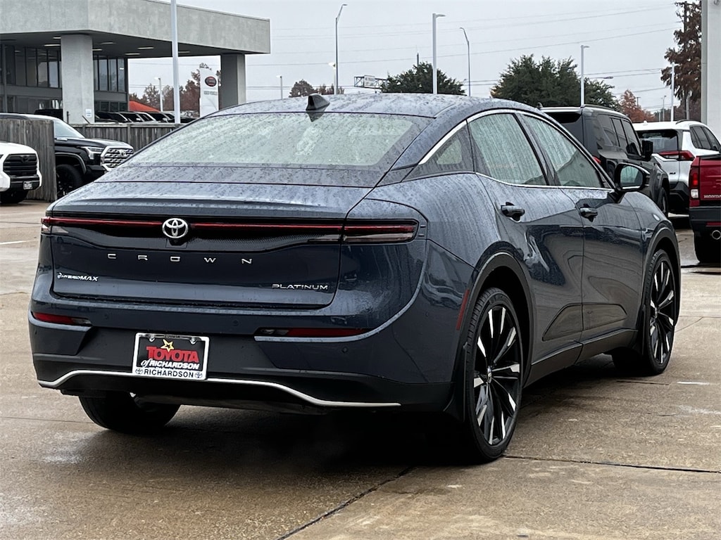 Step into the realm of sophistication with the 2025 Toyota Crown Platinum, a used hybrid masterpiece designed for those who demand excellence in every drive. This mid-size passenger car, dressed in an elegant Heavy Metal/Black exterior, combines style with substance. The all-wheel-drive capability ensures superior traction and control, while the turbocharged 4-cylinder engine delivers a seamless blend of power and efficiency.